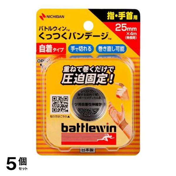 5個セット クーポン有 バトルウィン くっつくバンデージ 自着タイプ 指・手首用 25mm×4m 1巻入 (KB25F)