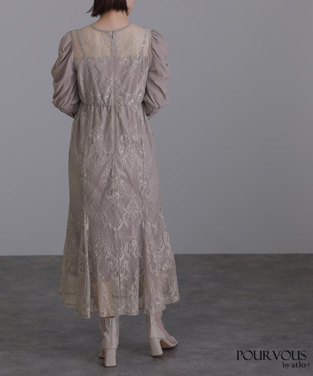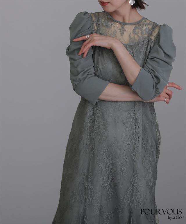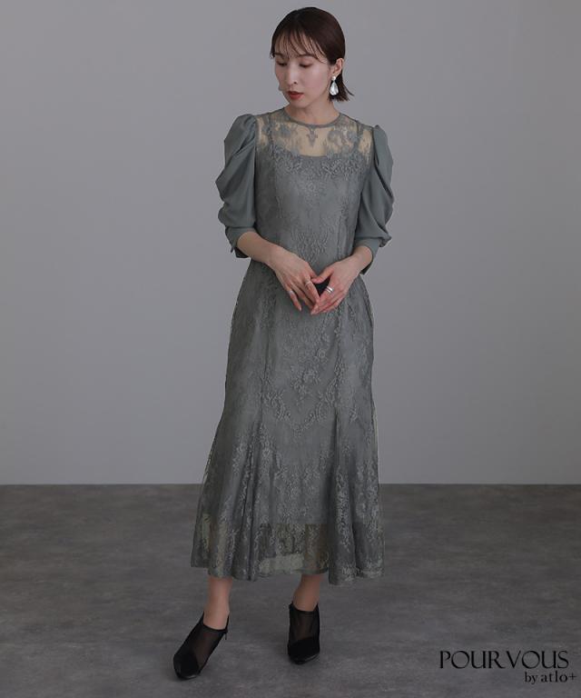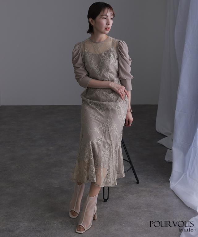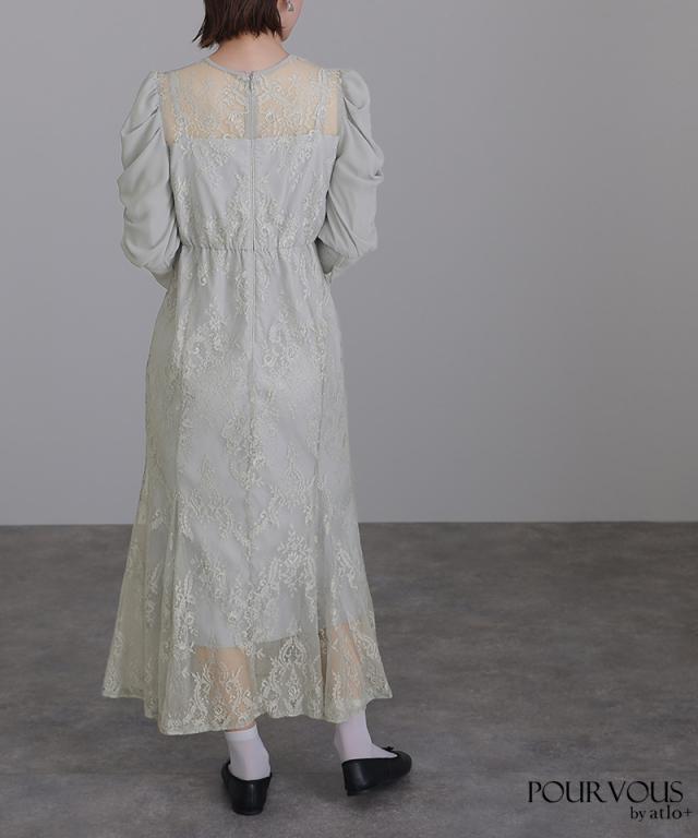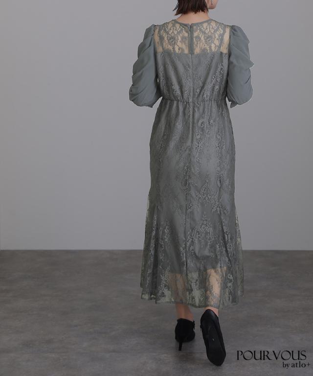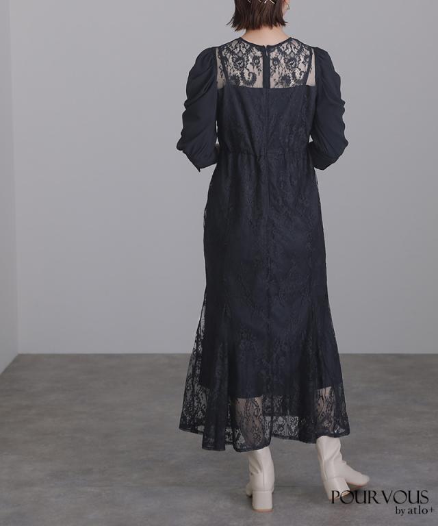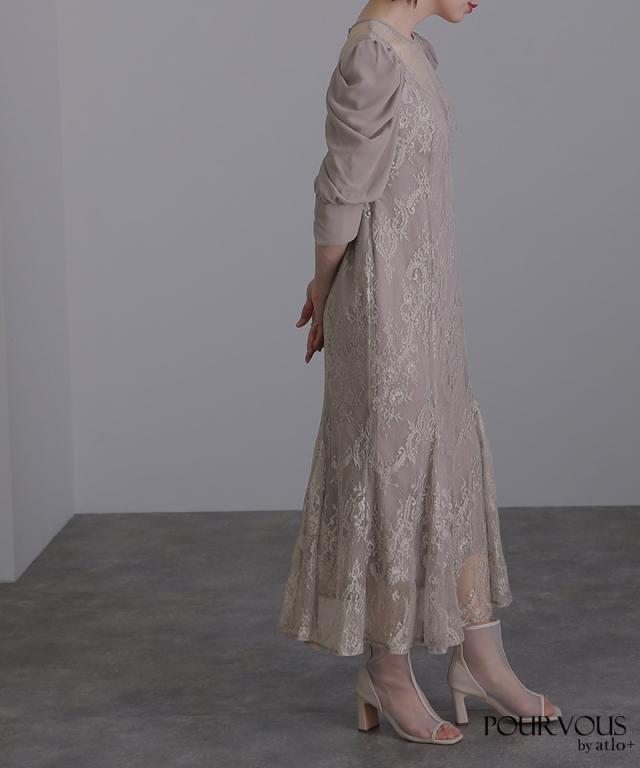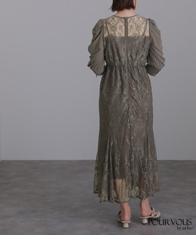シフォンスリーブ切替レースマーメイドワンピース/265221938