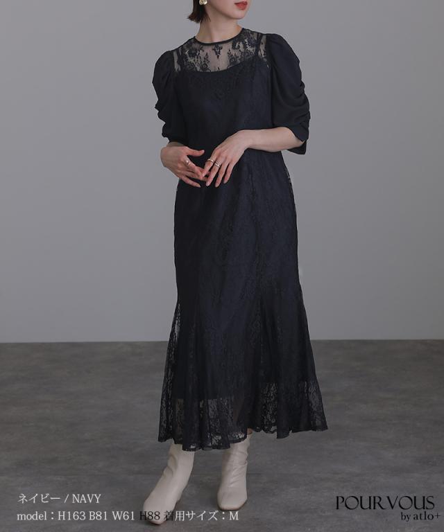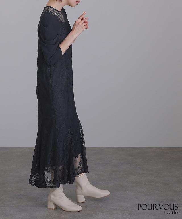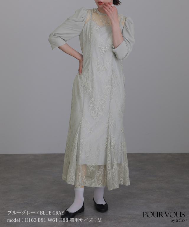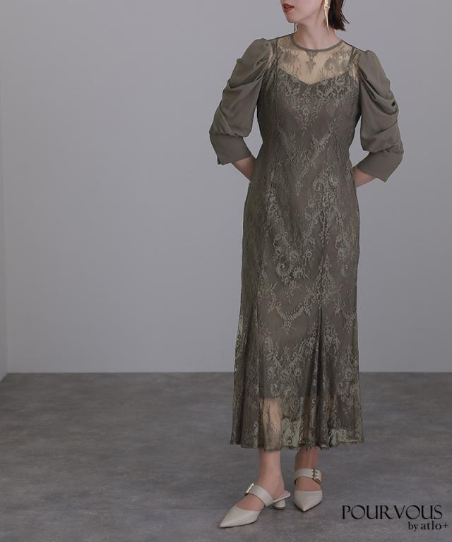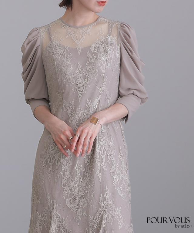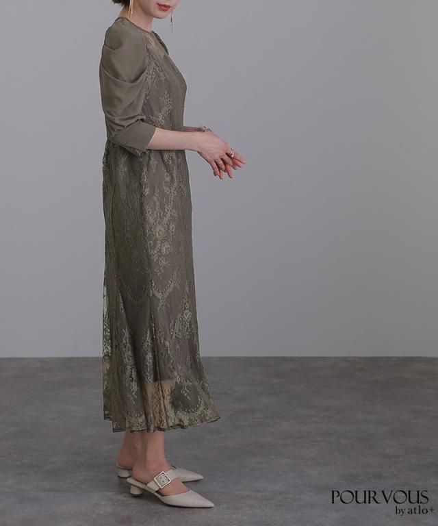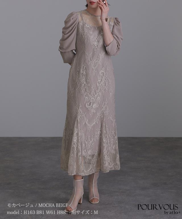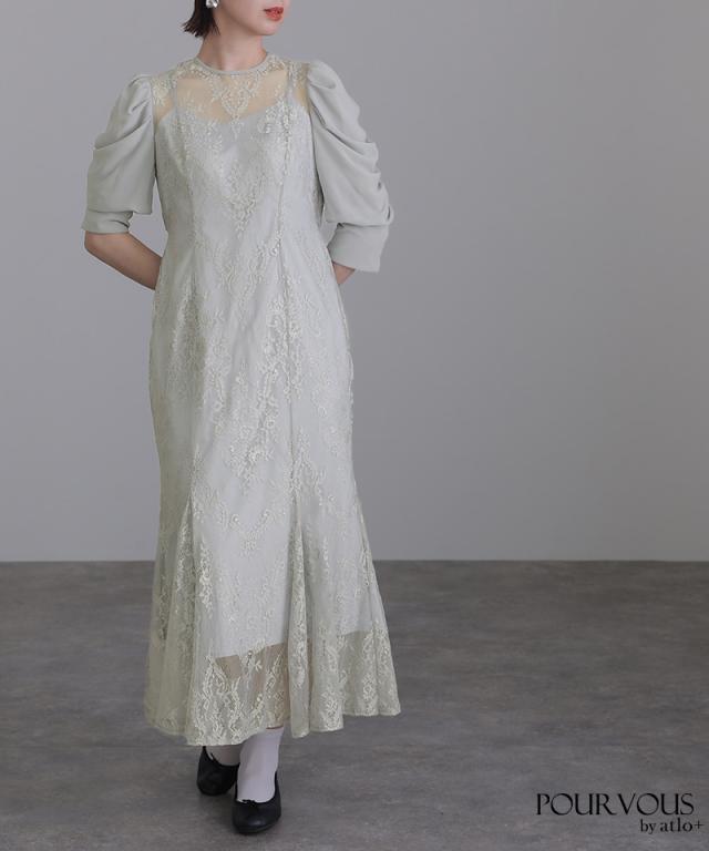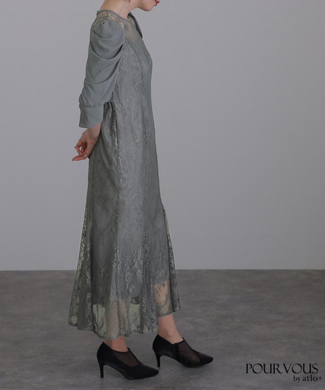 シフォンスリーブ切替レースマーメイドワンピース/265221938