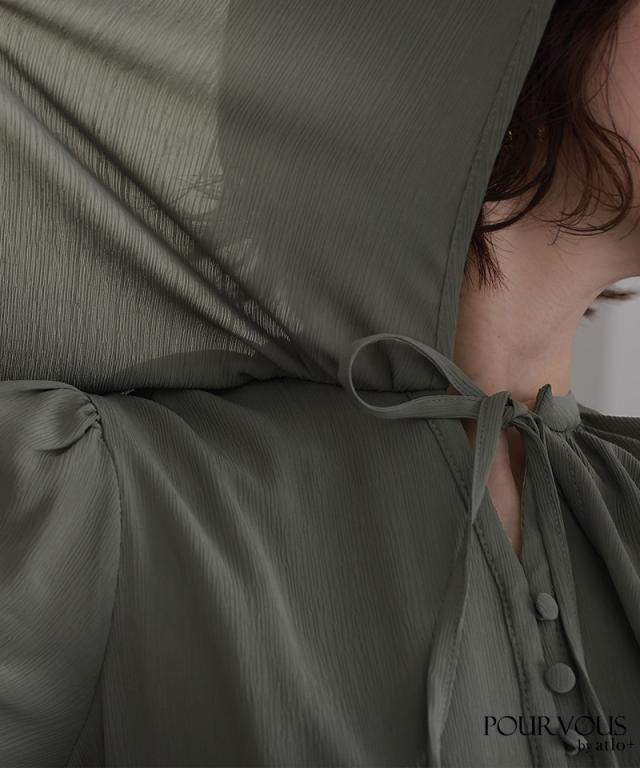 胸元のリボンが可愛らしく、首回りを調整できるので小顔効果も期待できます。