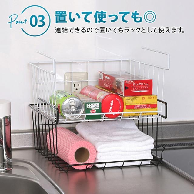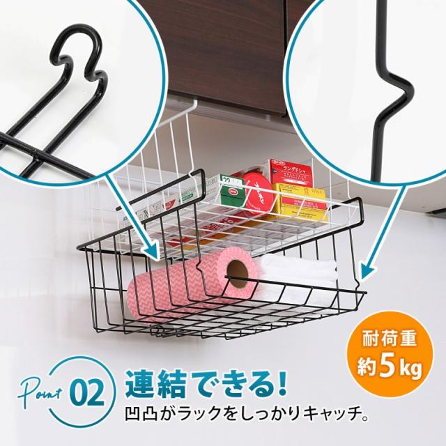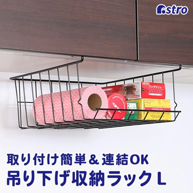 アストロ 吊り戸棚下ラック ブラック Lサイズ 連結できる キッチン 吊り下げ ワイヤーバスケット ラップホルダー 積み重ねOK 収納ラック ワイヤーかご 731-31