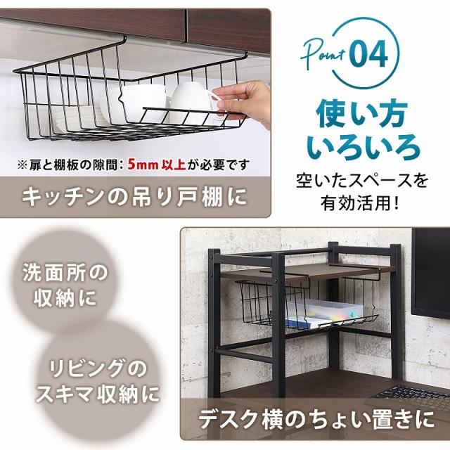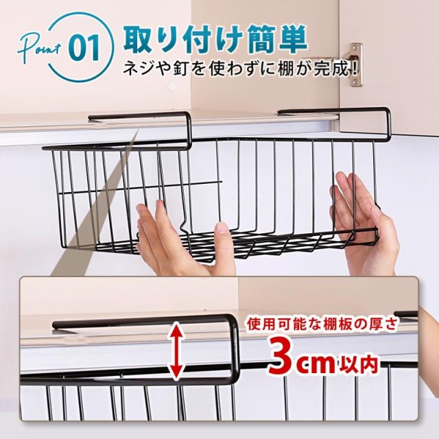 ●棚板に差し込むだけで棚下の空いているスペースを有効活用。