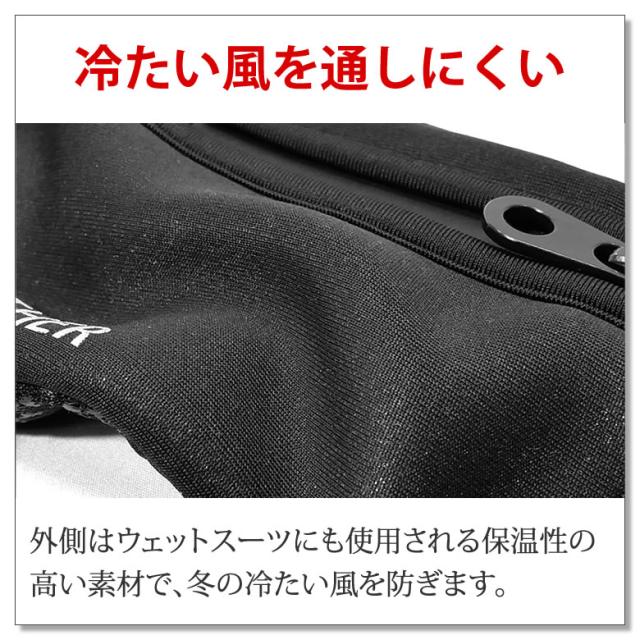 外側はウェットスーツにも使われている生地で、冬の冷たい風を通しにくい素材になっています。