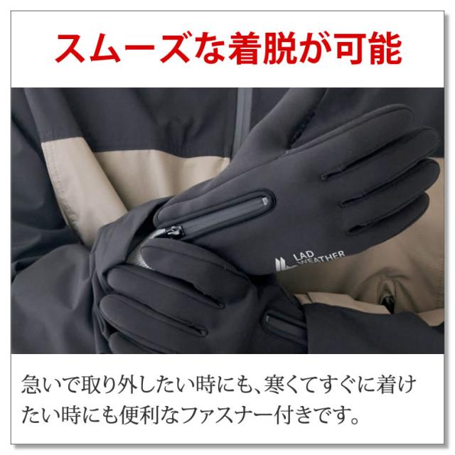 手袋 メンズ レディース 暖かい スマホ対応 防寒 [フリース素材で暖かい はっ水 シリコンすべり止め 止水ファスナー スマートフォン対応]春 秋 冬 自転車 通勤 通学 アウトドア スポーツ 登山 キャンプ 釣り てぶくろ 人気 おすすめ ランキング ラドウェザー LAD WEATHER