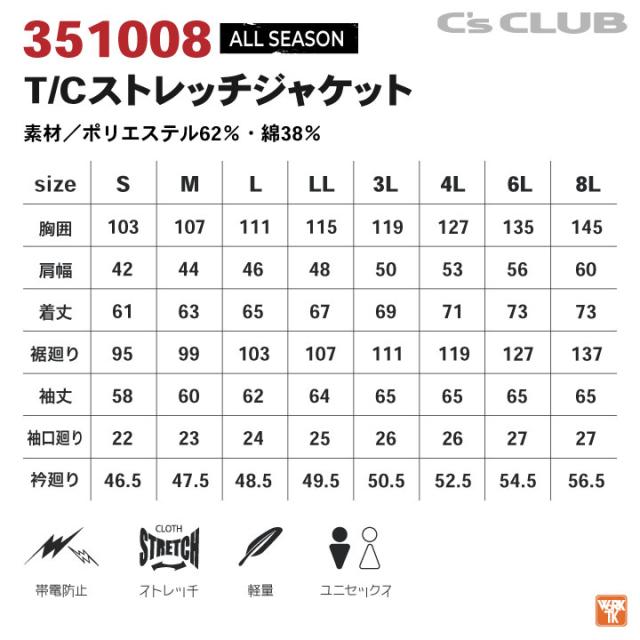 CUC 中国産業 351008 T/C ストレッチ ジャケット オールシーズン 作業服 帯電防止 男女兼用