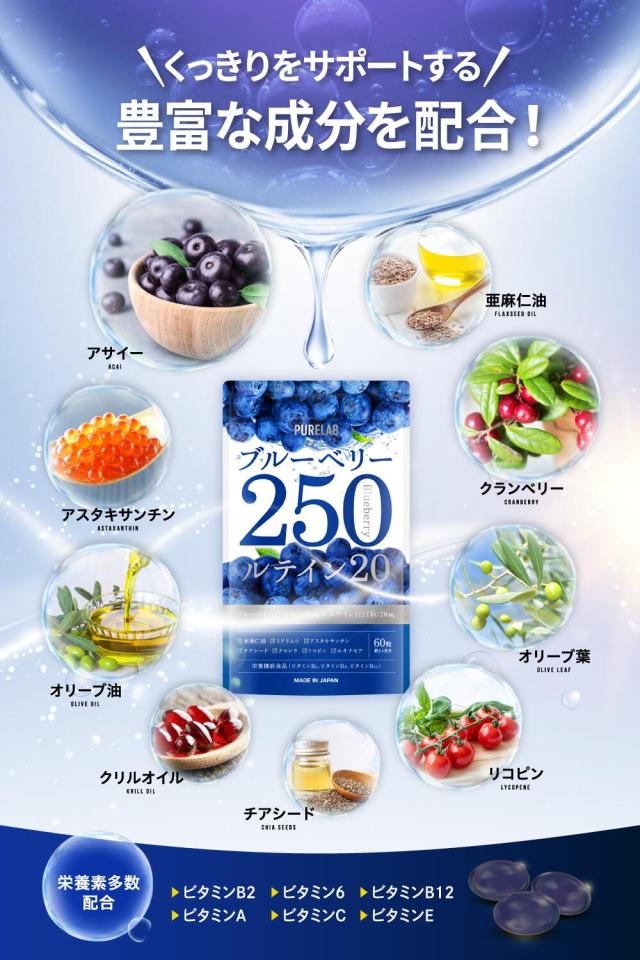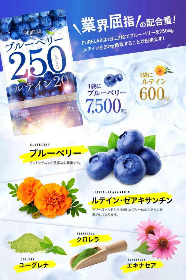 ブルーベリーサプリ ブルーベリー サプリ ルテイン サプリ 目 サプリ 目の疲れ アイケア ドライアイ 眼精疲労 ぼやけ 栄養機能食品 国内製造 高配合 1袋 60粒 約30日分 サプリメント 目の健康 PURELAB 送料無料 プレゼント ギフト
