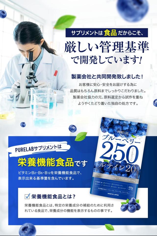 PURELABはサポート成分としてビタミンB2、B6、B12を栄養機能食品で、表示出来る基準量を含んでいます。