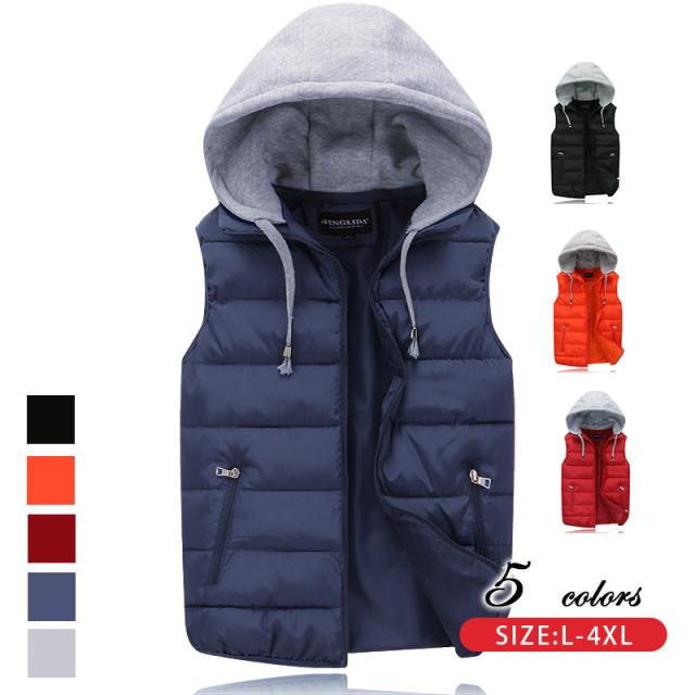 ベスト メンズ 韓国風 屋外 冬 暖かい ノースリーブ フード付き コート アウトドア スポーツ 送料無料 お出かけ