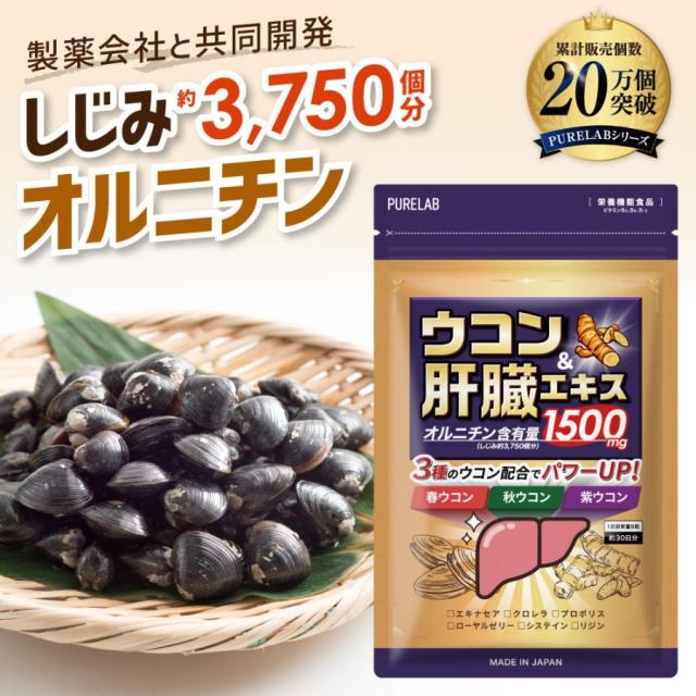 肝臓サプリメント ウコン オルニチン サプリ 肝臓エキス しじみ あさり サプリ ウコン 二日酔い 国内製造 栄養機能食品 1袋 150粒 約30日分 2日酔いサプリ ビタミンB 牡蠣エキス クエン酸 PURELAB 送料無料 ギフト プレゼント