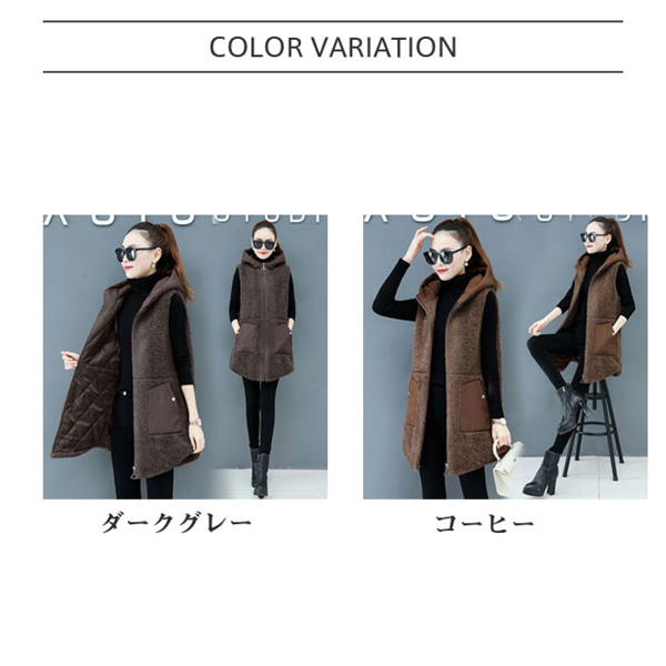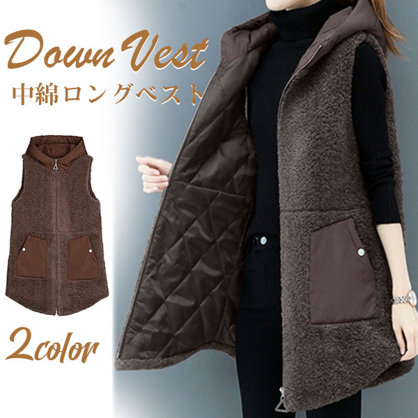 セール中 ボアベスト ロングベスト 中綿コート レディース 無地 フード付き 前開き ジャケット ジレ ノースリーブ 羽織り 軽量 アウター 防寒 秋冬