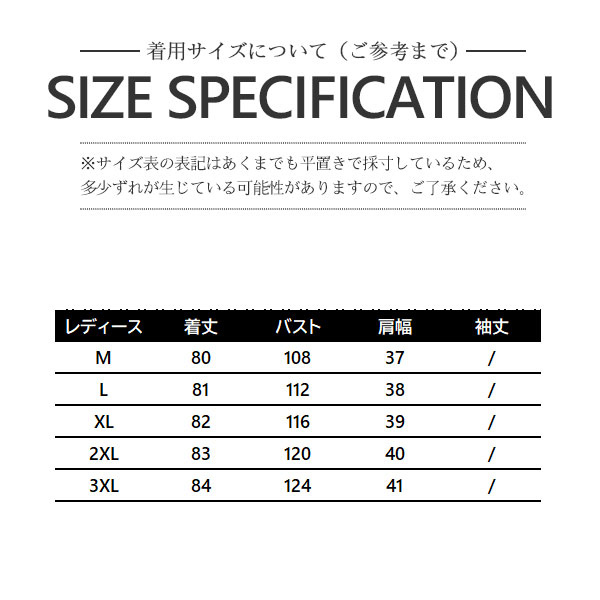 ※基本的に、XL・LL・2Lのサイズはすべて同じサイズです。