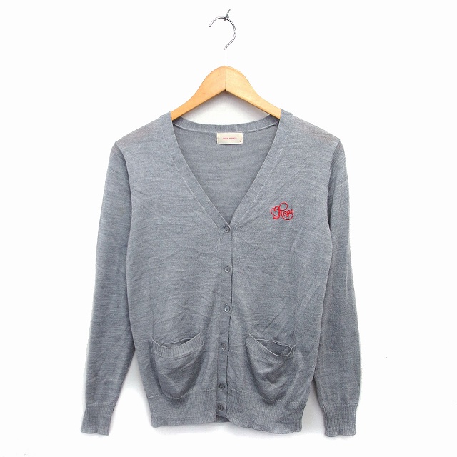 【中古】レピピアルマリオ repipi armario カーディガン ニット Vネック ウール混 ロゴ刺繍 リブ ハイゲージ 長袖 S