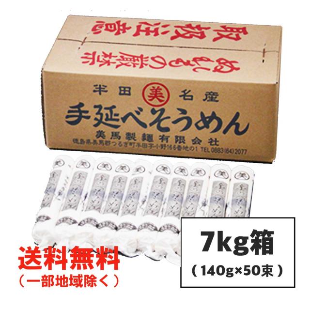 ギフト可 美馬製麺 半田そうめん(手のべ) 7kg (140g×50束) ギフト包装可 徳島より発送 送料無料(北海道・東北・沖縄除く)