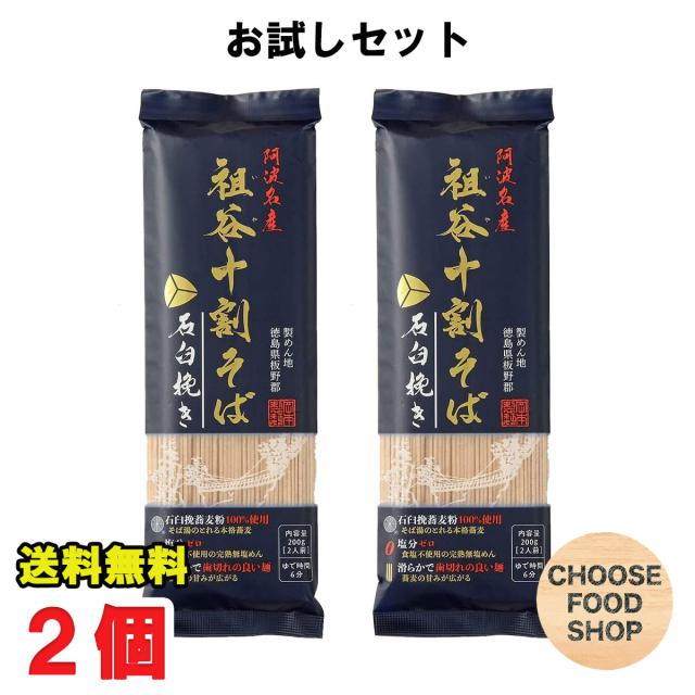 お試し 阿波名産 無塩 祖谷十割そば 400g (200g×2袋) 岡本製麺 祖谷そば 塩分ゼロ 年越し 蕎麦 石臼挽き 徳島より発送 【徳島特産品】【全国送料無料】