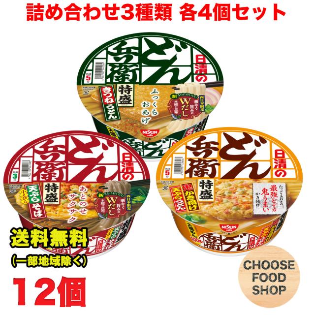 日清食品 どん兵衛 特盛 西 きつね 天ぷら かき揚げ うどん アソート 3種類 各4個セット合計12個 送料無料(北海道・東北・沖縄除く)