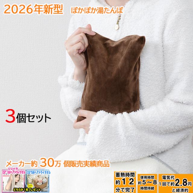 2026年型最新 湯たんぽ3個セット【ヘアドライタオルプレゼント】 湯たんぽ WJ-8190 送料無料 カバー付き 蓄熱 省エネ あんか 充電式 電気 ゆたんぽ