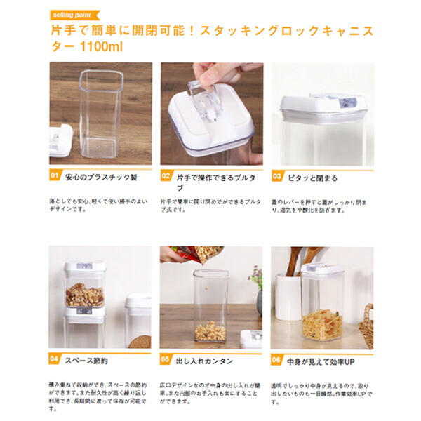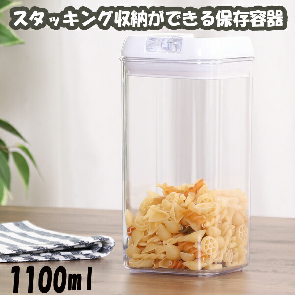 スタッキングロックキャニスター キュピタ 1100ml QPITA 密閉 保存容器 ホワイト 透明 フードストッカー おしゃれ 簡単 キッチン収納 収納容器 乾燥