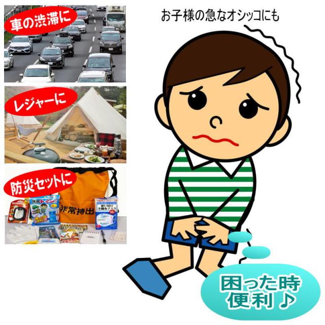 | ●車の渋滞 ●突然の災害 困った時に便利! 携帯トイレミニ 3こ入り オシッコを固めてニオイも消す! 大人、子供、男女OK 入院・介護にも! ソフトな受け口が付いてますので安心してご使用できます。 嘔吐の処理袋としても使用できます。 約500ccの水分を吸収します。 |