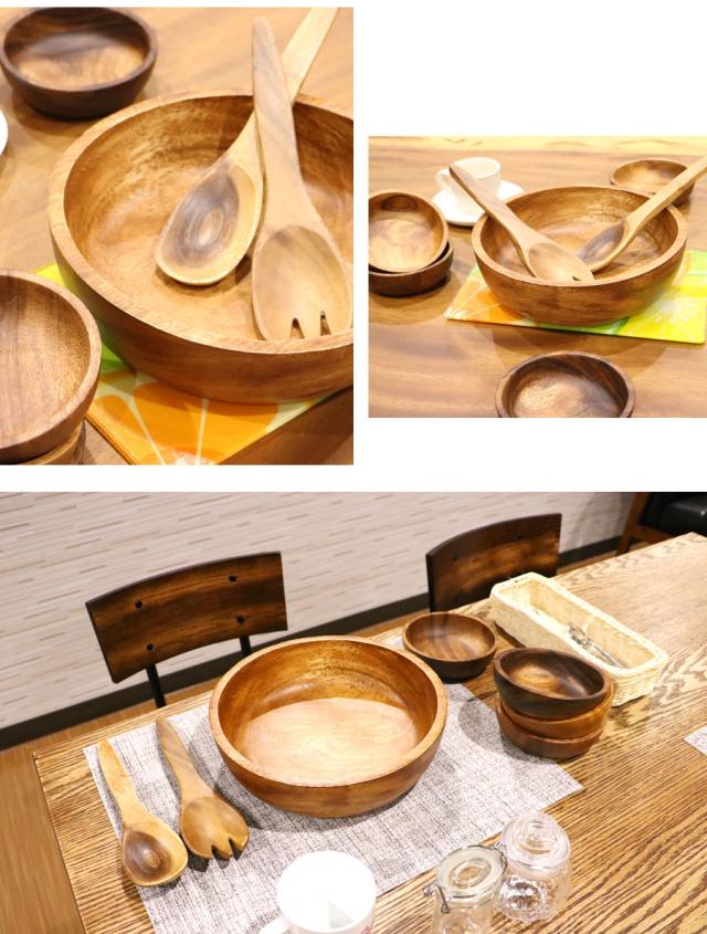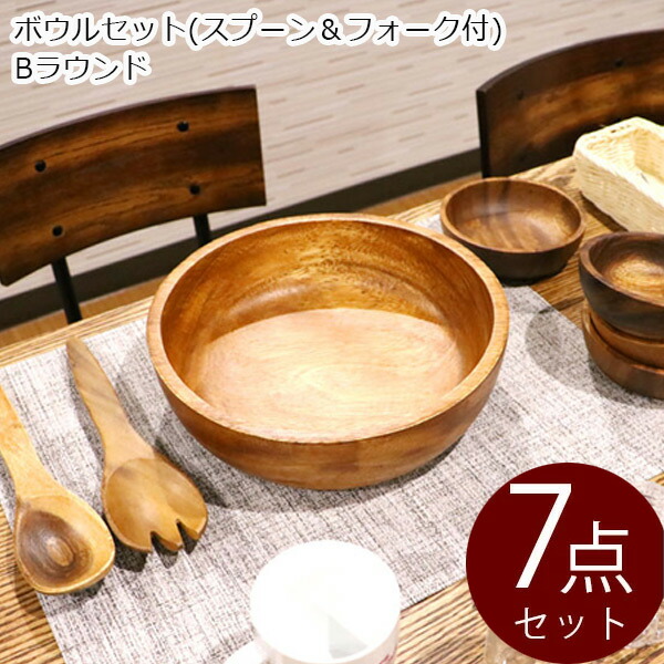 トレイ アカシア プレート ボウルセット(スプーン&フォーク付) Bラウンド 94495 お皿 キッチン雑貨 食卓 食器 お洒落 おしゃれ