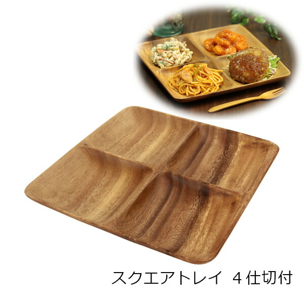 トレイ アカシア スクエアトレー 4仕切付 30150 お皿 キッチン雑貨 食卓 食器 お洒落 おしゃれ