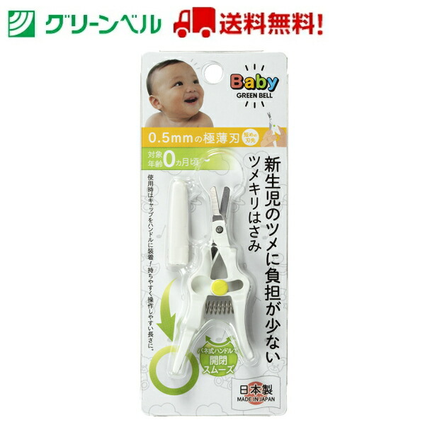 新生児のツメに負担の少ないツメキリはさみ BA-001 新生児 爪切り 爪切りハサミ はさみ 携帯用 安全 グリーンベル 衛生 清潔 病院 送料無料 定形外郵便