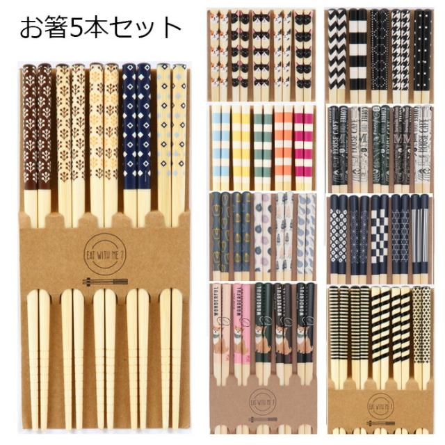 送料無料 お箸5本セット 5膳セット お箸 箸 ボーダー 北欧 モノトーン 猫 カフェ 和モダン ベジタブル 柴犬 折り紙 キッチン雑貨 生活雑貨 キッチン小物 ネコポス 追跡有