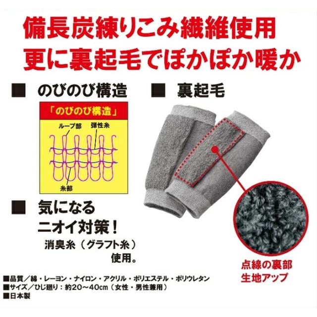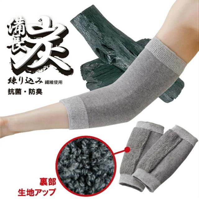 【国産 ふわふわ備長炭サポーターひじ用 2枚組】関節サポート 裏起毛 暖かい 備長炭 防臭健康用品 日本製 あたため 保護 134008 送料無料