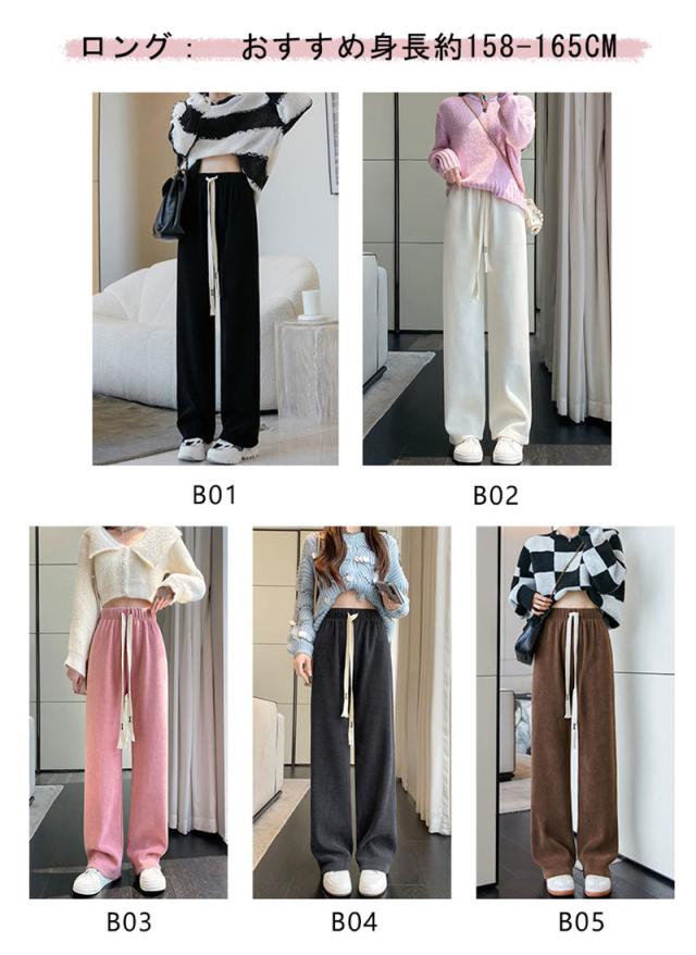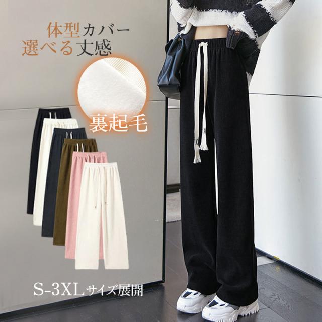 コーデュロイ ワイドパンツ レディース 裏起毛 ロングパンツ ウエストゴム ガウチョパンツ 体型カバー 冬 春 秋 着痩せ コーデ