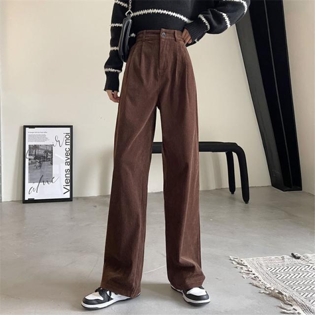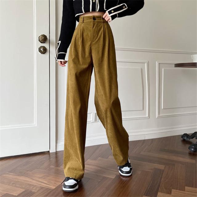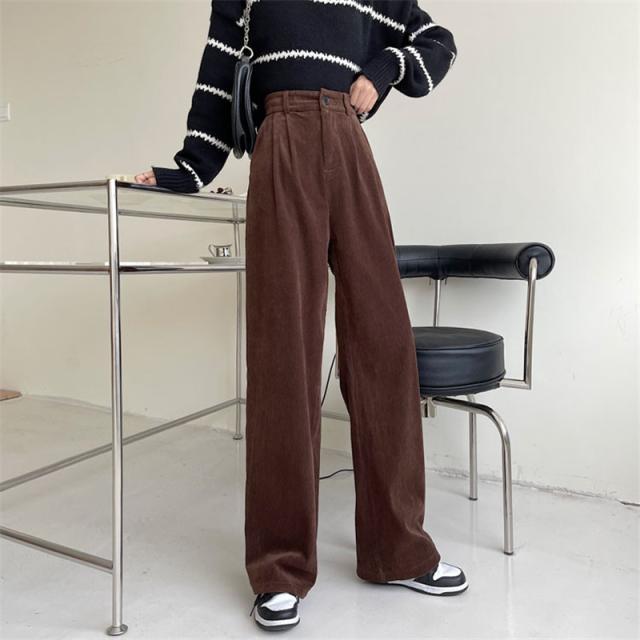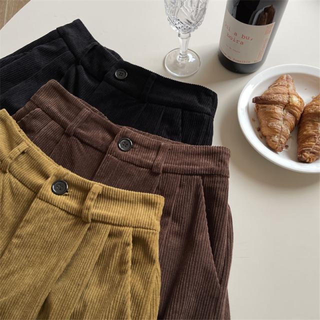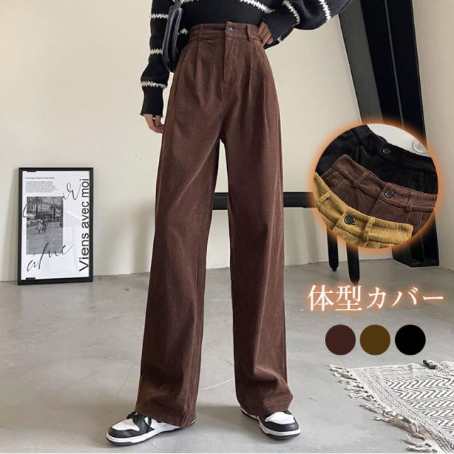 コーデュロイ ワイドパンツ レディース リブ ロングパンツ ウエストゴム ガウチョパンツ 体型カバー 冬 春 秋 着痩せ コーデ