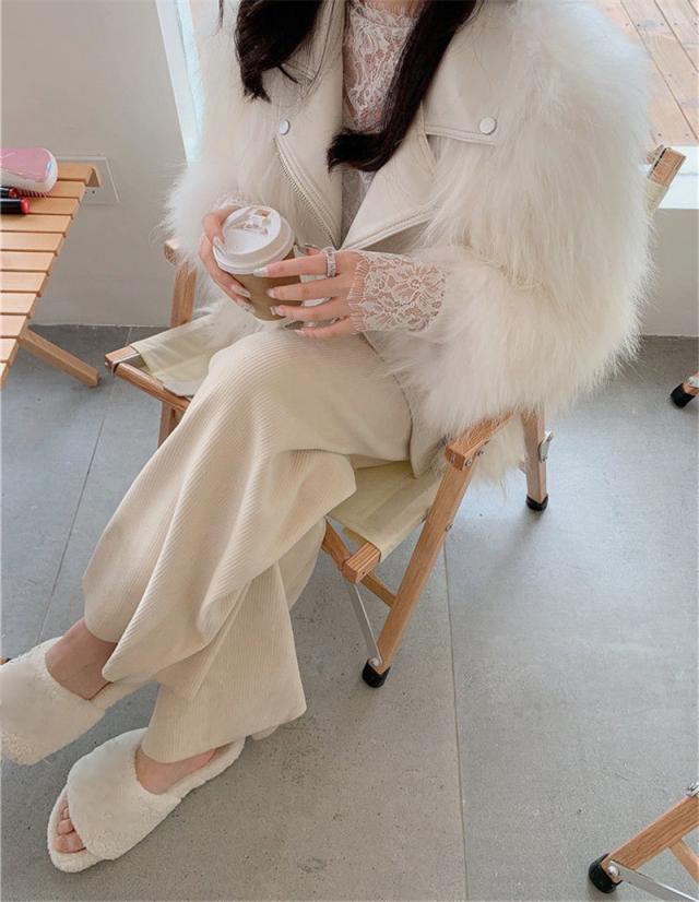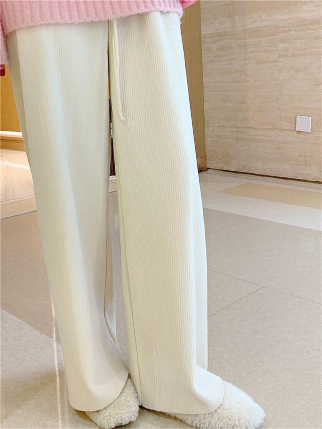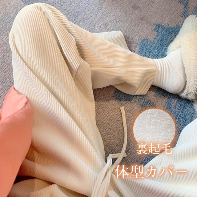 コーデュロイ ワイドパンツ レディース 裏起毛 ロングパンツ ウエストゴム ガウチョパンツ 体型カバー 冬 春 秋 着痩せ コーデ