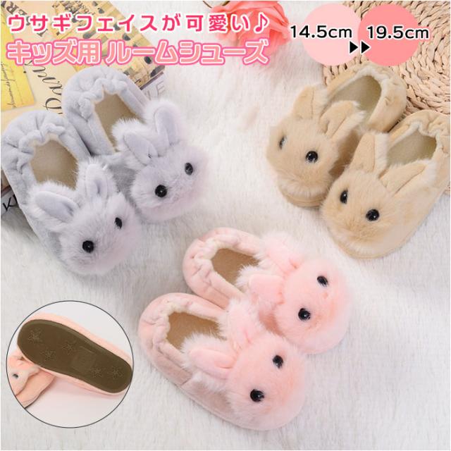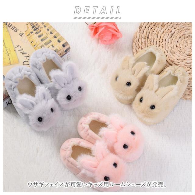 ルームシューズ 子供 もこもこ 通販 スリッパ 冬 秋冬 キッズ こども 子ども スリッポン あったか ウサギ うさぎ ラビット 室内履き 部屋履き 滑り止め 洗える 洗濯 できる 洗濯機 女の子 男の子