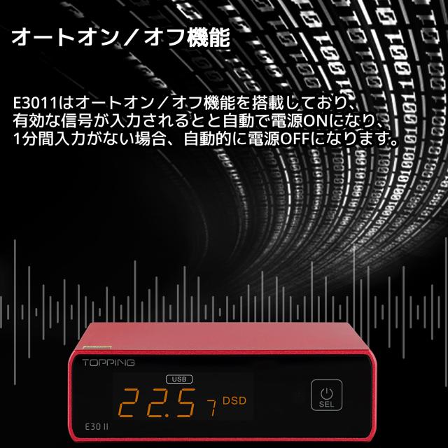 E30IIはオートオン/オフ機能を搭載しており、有効な信号が入力されるとと自動で電源ONになり、1分間入力がない場合、自動的に電源OFFになります。