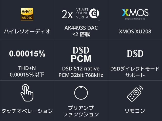 USBハードウェアは高い安定性と信頼性があるXMOS XU208とThesyconカスタムドライバーを採用しています。