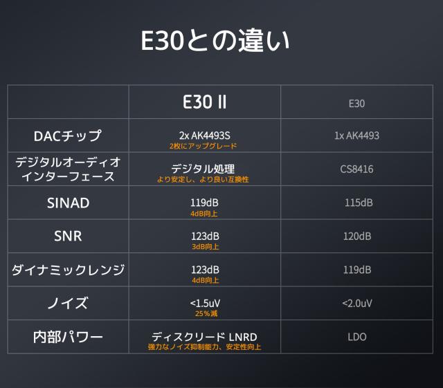 E30IIはAKMのVELVET Sound技術のサブフラッグシップであるAK4493Sチップを2基搭載しています。