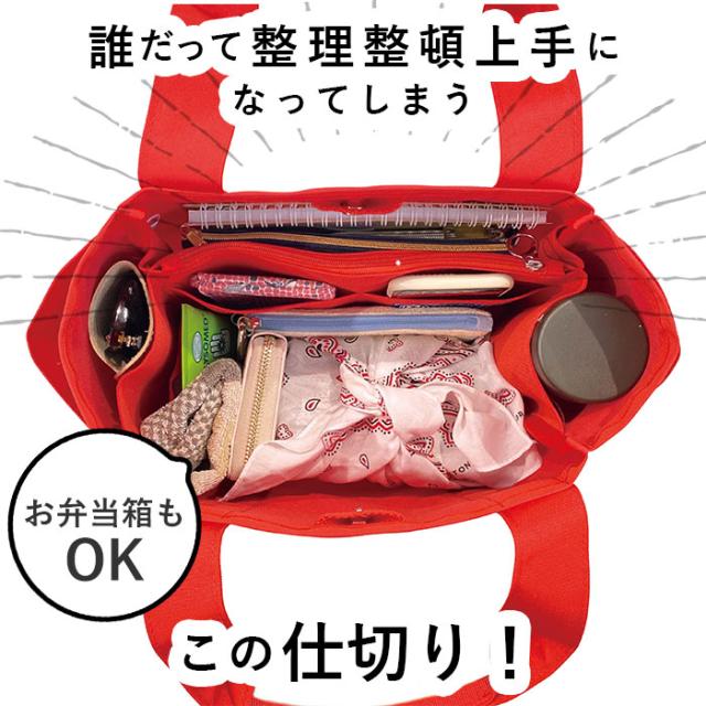 | 商品説明 | ・コロンとした丸みのあるかわいいフォルムと軽さ。 ・それでいて、しっかりと自立する使い勝手の良さがポイントです。 ・撥水加工が施され、雨の日も晴れの日もデイリーに使える頼もしいトート。 ・バッグの中で散らかってしまいがちなアイテムを整理整頓。 ・たっぷり荷物が入り、荷物の仕分けがしっかりできます。 4つのお部屋に仕切られた内側。 ・荷物を立てて収納することもできるので、モノの出し入れがしやすく、中身もパッと確認できます。 ・仕切りは、片側に寄せることもでき、全体のスペースを広く使うことができます。 ・底マチが広く、ランチボックスなども入ります。 ・中身に応じて使い分けが可能です。 ・両サイドのポケット入り口が斜めにカットされ、アクセントになっています。 ・すぐ取り出したいものを入れておくのに便利です。 ・スマホやパスケース、ハンドクリーム、消臭スプレーなどの小物の収納に。 ・シンプルだけど、機能的。 ・お出かけを心地よく。 ・まいにち使うほどに、“グッドデザイン”を実感できます。 |