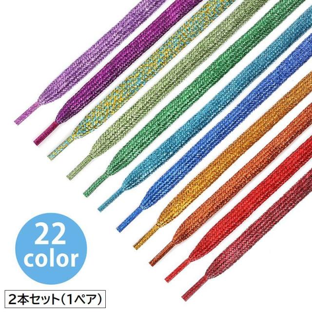 靴紐 2本セット 1ペア 靴ひも ラメ 平型 平紐 フラット カジュアル スニーカー 靴 運動靴 シューズ シューレース キラキ