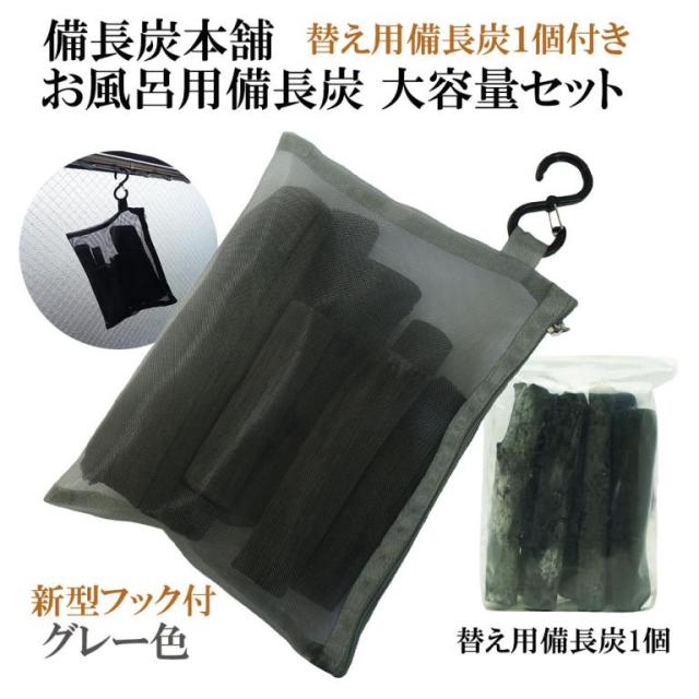 入浴剤 塩素除去 湯冷めしにくい お風呂用 大容量 備長炭セット グレー + 替え備長炭1個付き 繰り返し使えて経済的 保湿 エステ 美肌 温泉 遠赤外線 浄化 ホテル&スーパー銭湯で採用 ギフト プレゼント