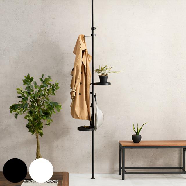 突っ張りポールラック 丸型トレイ2個 フック付 高さ調整 見せる収納 ( 突っ張りラック 突っ張り棒 ラック ハンガー ポール スリム 収納 突っ張り 隙間収納 つっぱり棚 スリムラック 収納ラック トレー フック 2段 観葉植物 )