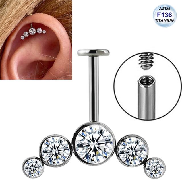 [ 16G 高品質 ASTM F136 ボディピアス 逆ネジ ] ファイブブリッジジュエル ジルコニアCZ 内ネジラブレット ボディーピアス 16ゲージ インターナル ニッケルフリー メンズ レディース 平ら 軟骨 丸型 丸い 立て爪 クリスタル アンテナヘリックス 耳の上 5個 石付き 人気