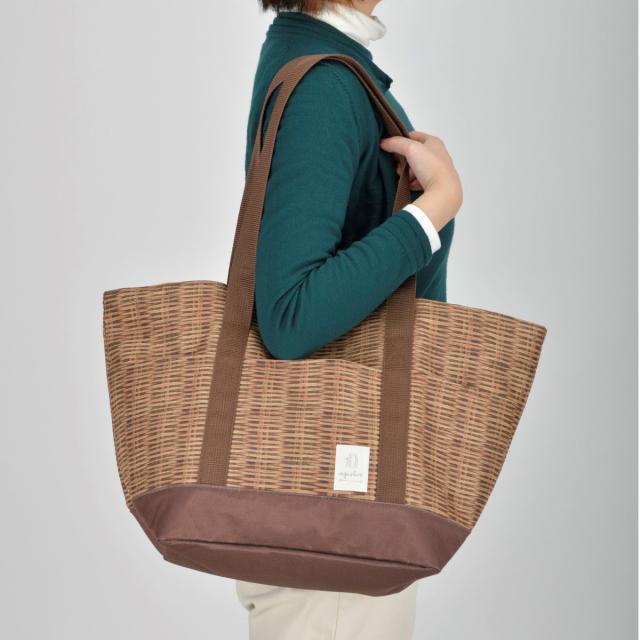 リアルなラタンプリントのマチ付きトートバッグです。内側は汚れにくいPE加工ですので、ピクニックやお買い物にぴったりです。