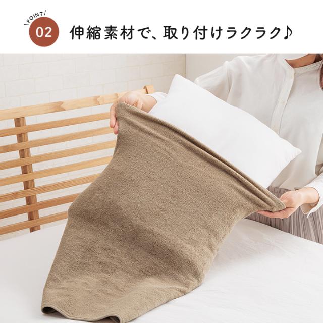 | ■ 肌にやさしい綿素材のパイル生地は吸水性にすぐれており睡眠中の汗を吸収し、さらっと快適です。 ■ 伸びる素材なので、多彩なサイズや形の枕にのびのびフィット。 ※対応枕サイズ:縦50cm×横63cmまで ■ 両サイドが開いており、よく伸びるので、取付け・取り外しが簡単です。 ■ 生地には抗菌加工(Ag加工)を施しており、繊維上の細菌の増殖を抑制する効果があります。 ■ 洗濯ネットに入れて洗濯機で洗えるのでいつでも清潔にお使いいただけます。 |