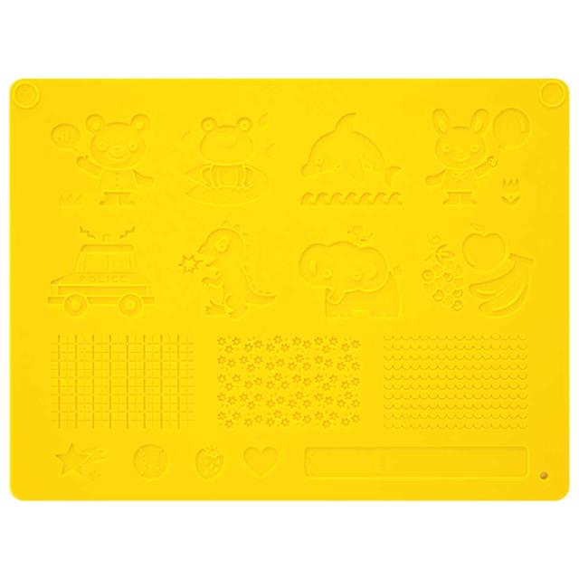 ねんど遊びに必要なねんど板とヘラのセットです。ねんど板の片面にはかわいい押し型や模様が付いています。8種類の使い方ができるねんどヘラも4本付いてます。ねんどを平らにのばして、かわいい型や模様の型の上に押して、いろいろな作品を作ってみましょう。対象年齢は3歳以上です。