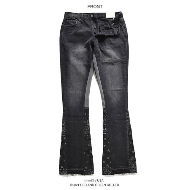 mnml デニム ジーンズ メンズ 春夏秋冬用 黒 ミニマル ジーパン Gパン パンツ スリム 細身 無地 ペイズリー柄 フレアパンツ フレア ブーツカット フレアージンズ ウォッシュ b系 ヒップホップ ファッション ストリート系 ハイ ブランド 21ML-AW223D