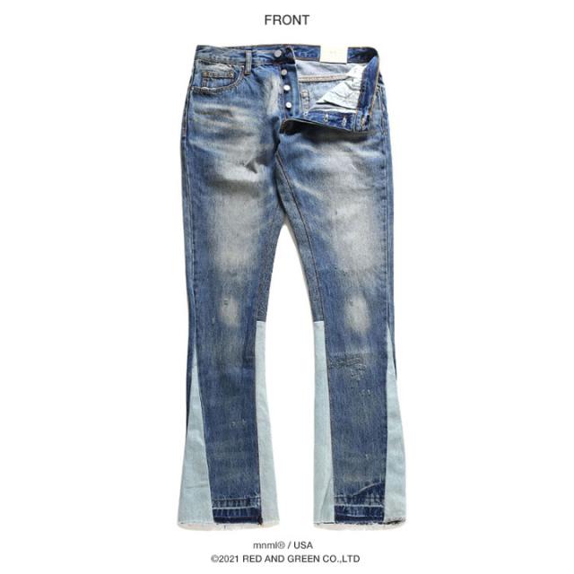 mnml デニム ジーンズ メンズ 春夏秋冬用 インディゴブルー ミニマル ジーパン Gパン パンツ スリム 細身 無地 フレアパンツ フレア ブーツカット フレアジーンズ ウォッシュ b系 ヒップホップ ファッション ストリート系 ハイ ブランド 21ML-AW175D