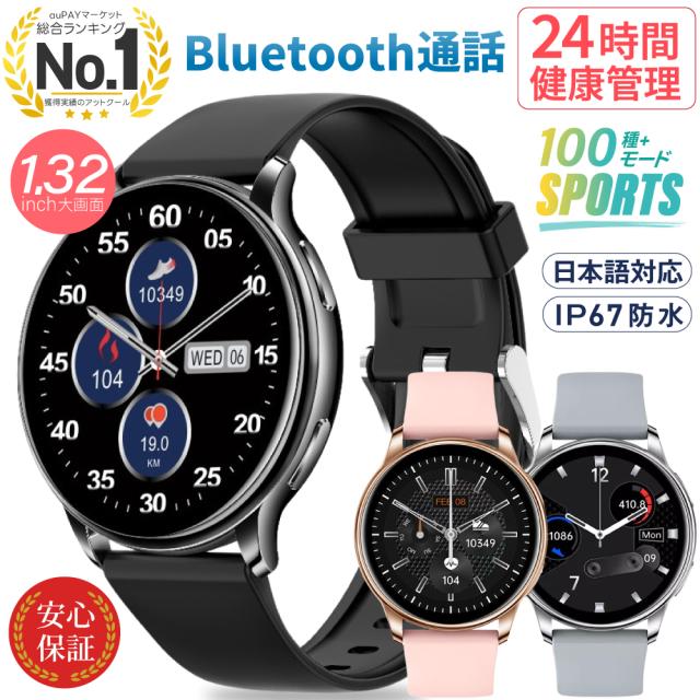 【技適認証済み】 スマートウォッチ 1.32インチ 大画面 通話機能 IP67防水 体温 血圧 血中酸素 健康管理 生理周期 歩数計 運動管理 レディース メンズ iPhone Android プレゼント 日本語 H33