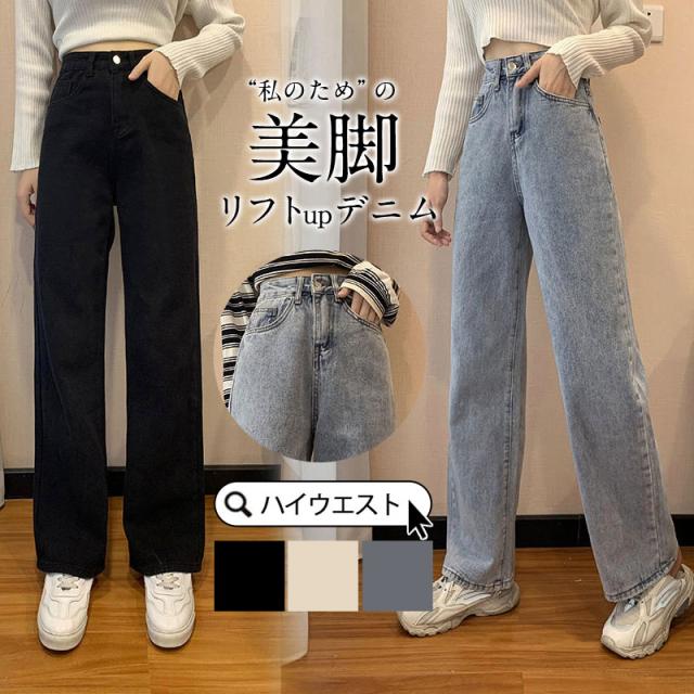 【水曜日まで!10%クーポン配布中】 デニムパンツレディース ストレートパンツ 秋冬 ハイウエスト ゆったり ロング丈 春 チノパン ジーンズ 美シルエット 美脚 カジュアル ズボン ボトムス