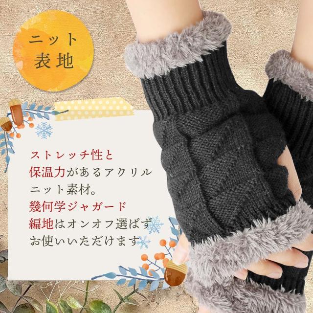| 商品の説明 | 外側はニットで内側はふわふわ!あったかくおしゃれに。 指開きタイプで作業やスマホ操作の邪魔にならない! 指なし手袋型ハンドウォーマー。 ●ほわほわホカホカな裏地 肌触りが良く保温力が高いシャギーを裏地までたっぷりあしらいました。 手元をかわいく暖めるおしゃれなアイテムです。 ●屋外でも屋内でも、オンオフ問わず使いやすいデザイン ストレッチ性と保温力があるアクリルニット素材。 幾何学ジャガード編地はオンオフ選ばずお使いいただけます ●フィンガーレスタイプ 指の部分がカットされたデザインなので、寒い日でも作業がはかどる! スマホ・タイピング・メモなど、さまざまなシーンで大活躍♪ ●親指部分のカットにこだわり スマホ操作で特に使う親指部分は、動かしやすいように根本からカットオフしました。 ほんのちょっとの工夫がとっても便利を生み出しました。 自分へのごほうびやプレゼントにもピッタリ 今年の冬もおしゃれに温活してみませんか? イベント ギフト 暖かい かわいい |