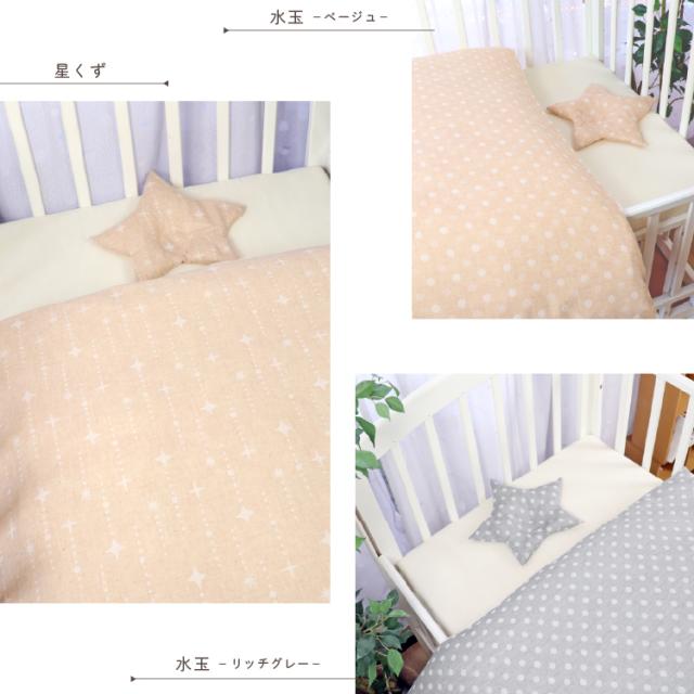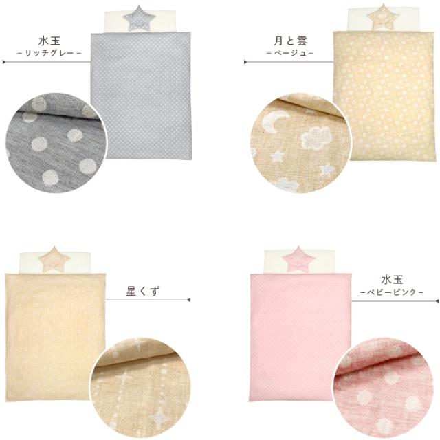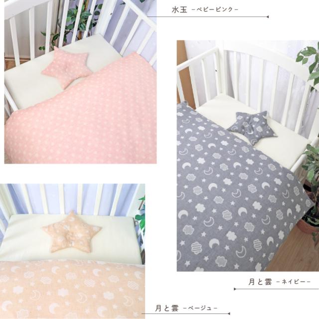 ■ダブルガーゼ素材のふんわりした肌触りで、あかちゃんにもママにもやさしいベビーふとんセットです。