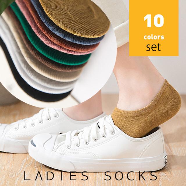 【10色組】脱げない レディース スニーカーソックス 浅履き ショートソックス 春夏秋冬 レディース 送料無料 SLENDER スレンダ ws003