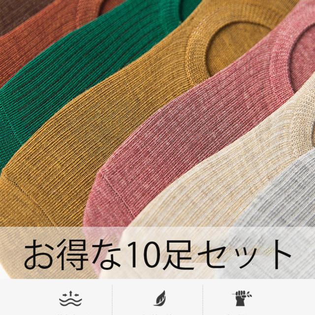 コーデの差し色にぴったりなカラフルソックスまで揃えた、お買得な10足セットです。